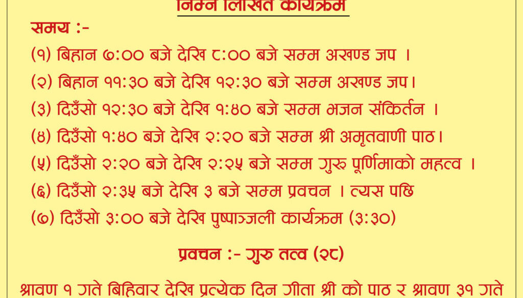श्री कृष्णजन्माष्टमी को पावन पर्वमा निम्न लिखित कार्यक्रम 2082